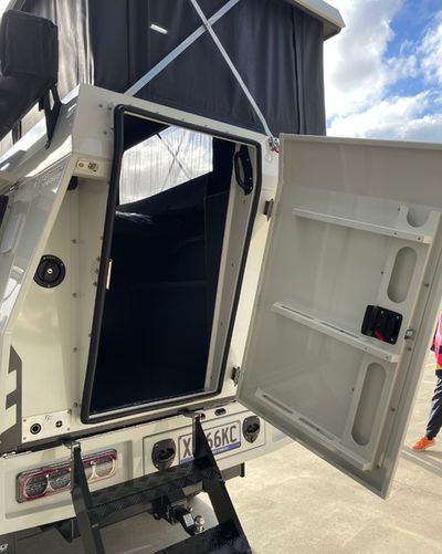 Featuring electric opening pop-top, fully enclosed camper, external kitchen under a 270º awning, hot and cold running water and heaps of storage. It comes with the highest quality off-road accessories such as 2 x spare wheels, long range water and fuel tanks, recovery gear, Starlink satellite connectivity, UHF radio, emergency beacon and more.